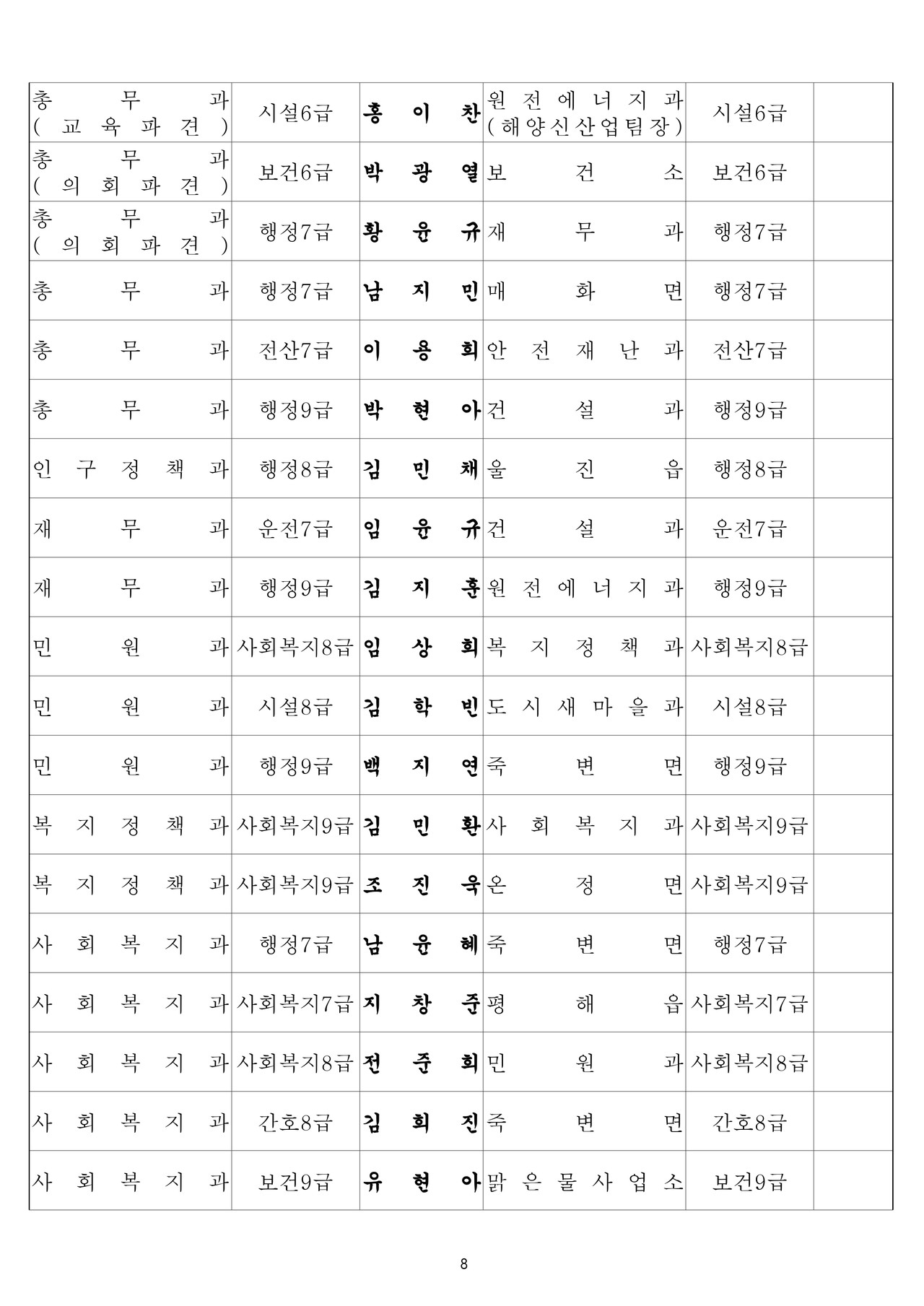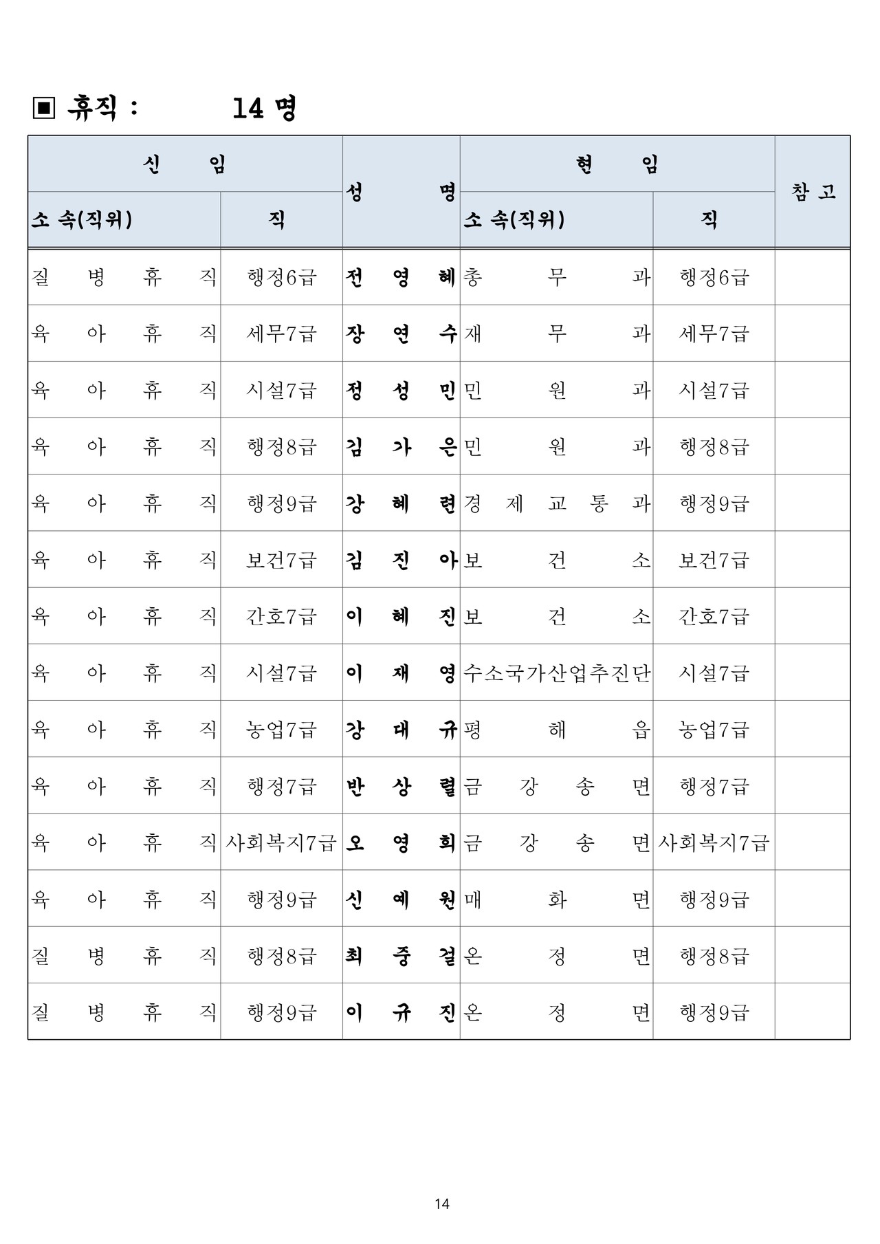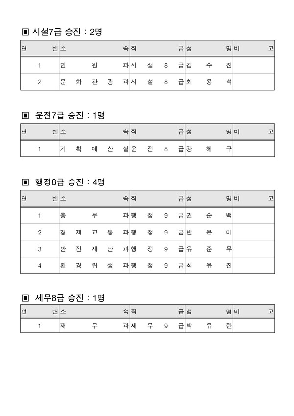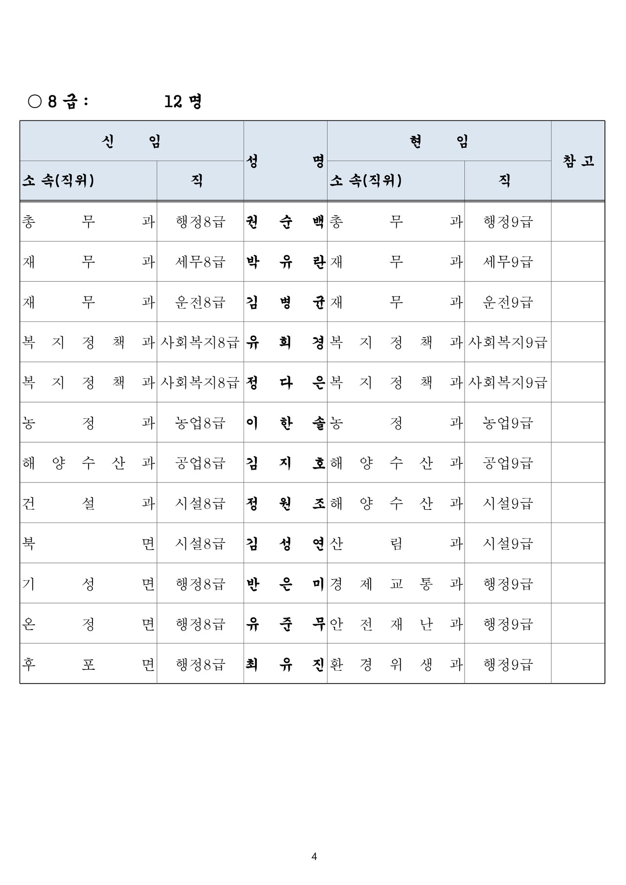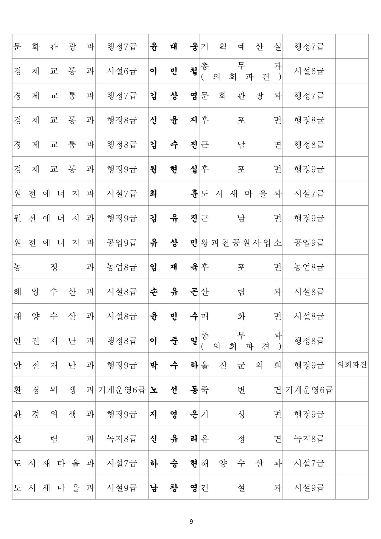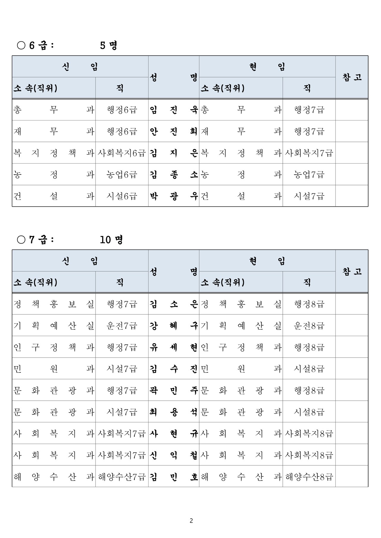이전 기사보기 다음 기사보기 전종윤 박학주 임정준, 5급 과장 승진 바로가기 복사하기 본문 글씨 줄이기 본문 글씨 키우기 스크롤 이동 상태바 현재위치 홈 울진군 행정 전종윤 박학주 임정준, 5급 과장 승진 기자명 울진신문 입력 2025.12.29 17:13 댓글 0 바로가기 복사하기 본문 글씨 줄이기 본문 글씨 키우기 26일자 인사위원회 심의결과 울진군 승진 31명 등 대인사 인사위원회 심의결과 /편집부 울진신문 webmaster@uljinnews.co.kr 다른기사 보기 저작권자 © 울진신문 무단전재 및 재배포 금지 댓글삭제 삭제한 댓글은 다시 복구할 수 없습니다. 그래도 삭제하시겠습니까? 비밀번호 닫기 기사 댓글 쓰기 0 댓글 접기 댓글 내용입력 비회원 로그인 작성자 비밀번호 댓글 내용입력 댓글쓰기 계정을 선택하시면 로그인·계정인증을 통해 댓글을 남기실 수 있습니다. 회원 로그인 비회원 글쓰기 작성자 비밀번호 자동등록방지 로그인 옵션 창닫기 당신만 안 본 뉴스 스카이레일 뇌물 관련 4명 구속영장 청구 (7) 울진군수 선거 누가 당선되나? 전찬걸 황이주 군수 예비후보 등록 강한 추진력으로 판을 바꾸겠습니다! (4) 1심 재판부, "변상금 즉시 징수 필요하다" (10) 골재채취 관련 뇌물사건 오늘 검찰구형 (1) “울진형 기본소득·햇빛소득마을 추진” 스카이레일 뇌물 관련 4명 구속영장 청구 (7) 주요기사 '건강한 노인, 존경받는 어른' 비젼 제시 4월1부터, 울진카드 캐시백 → 12% 국가유공자 보훈 수당 100% 인상 군민안전보험 최대 1억원까지 보장 곳곳에 '벚꽃터널', 나들이객 유혹