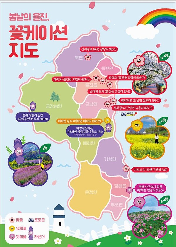 또한 울진에서는 4월 11일 ~ 12일 이틀간 오전 11시부터 오후, 성류굴 벚꽃데크길 1km 구간에 봄 노래를 전해 줄 3팀의 버스킹 공연과 함께, 꽃으로 장식된 포토존이 운영될 예정이며, 성류굴 북부주차장 입구에서는 플라워마켓도 함께 운영되어, 봄꽃의 아름다움에 흠뻑 젖을 수 있도록 준비했다.